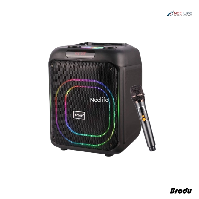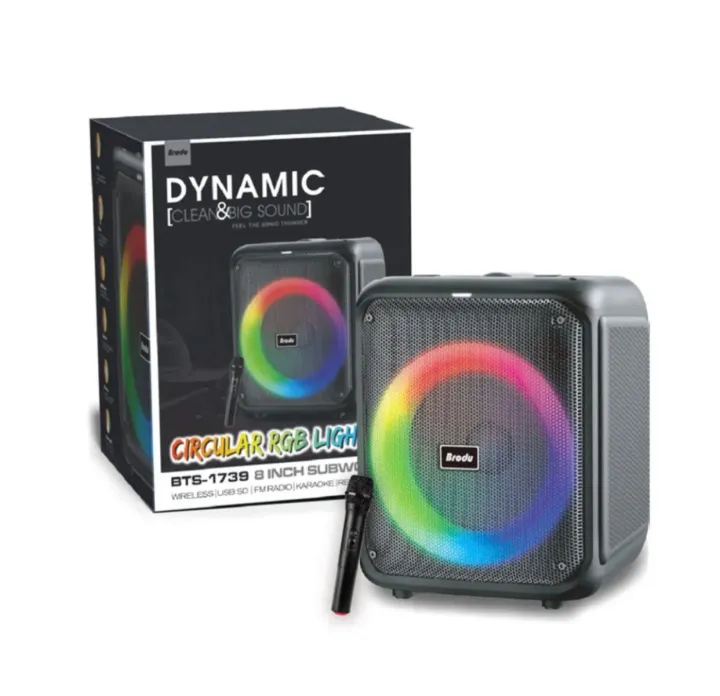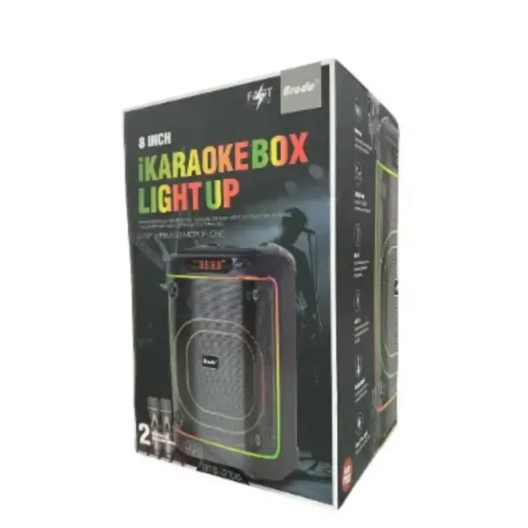 Brodu BTS 2105 Wireless Speaker – 8″ Bluetooth Karaoke Speaker with Dual Wireless Mics & RGB Lights