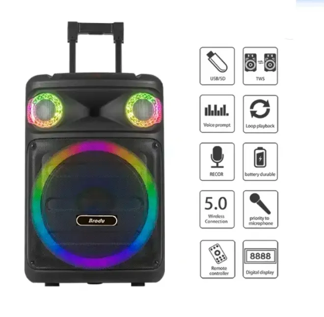 Brodu BTS-2250 8 Inch Portable Dual professional levelkaraoke Wireless bluetooth Speaker with 2 Mic