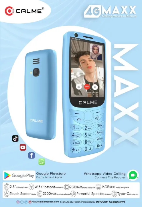 Features: 01- Touch Screen 02- Dual Sim 4G 03- 2.8 Inches HD Display 04- 2GB Ram 05- 16GB Rom 06- Super WiFi 07- Hotspot 08- Dual Camera 09- Bluetooth 10- LED Torch Light 11- 3200 mAh Battery 12- Big Powerful Speaker 13- Block Unknown Callers 14- FM Radio 15- Audio & Video Player 16- Google Play Store 17- Expandable Memory 18-Type C Charging Port