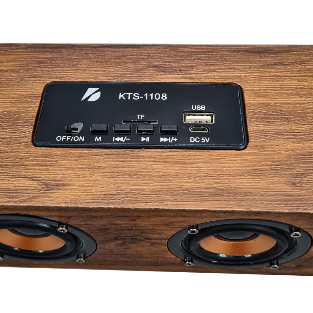 Transform your audio experience with the KTS-1108 Wireless Portable Speaker, designed for versatility and powerful sound. Whether you’re hosting a party, enjoying an outdoor adventure, or relaxing at home, this 20W speaker with a 2400mAh rechargeable battery delivers crystal-clear sound and deep bass. Its premium wooden and plastic build, versatile connectivity options (Bluetooth, USB, FM, TWS, and TF memory card), and compact yet durable design make it the perfect companion for any occasion. Elevate your sound game today with the KTS-1108 – the ultimate blend of portability, performance, and style!