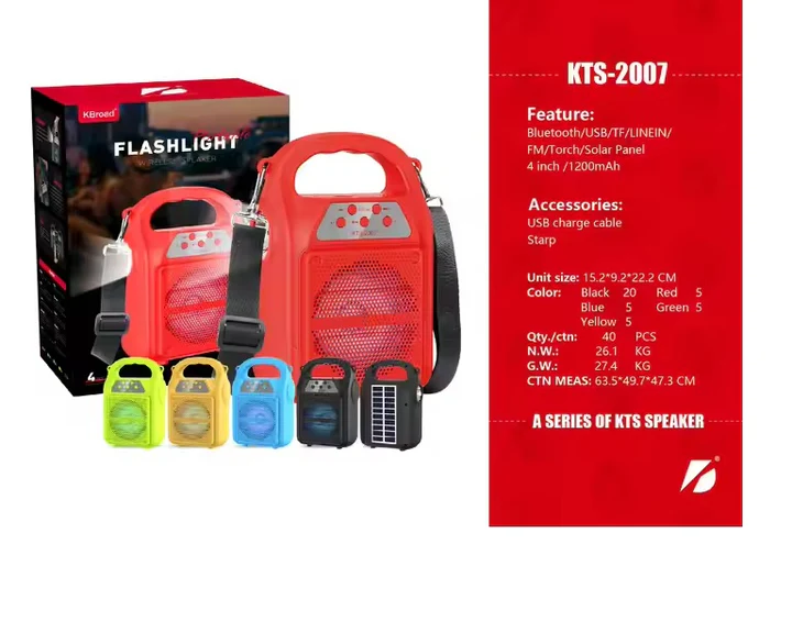 Its rugged and portable design makes it easy to carry anywhere, and the simple control buttons allow effortless music and volume control. Durable, energy-efficient, and practical, the KTS-2007 Solar Wireless Portable Speaker is a perfect choice for users who want sustainability with high-quality sound.