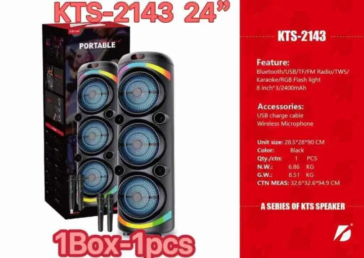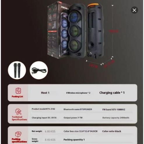 KTS-2142 Portable Bluetooth Speaker with 2 Wireless Microphones 38inch Big Size FM USB SD Card LED Original price was: ₨45,000.00.Current price is: ₨32,000.00.