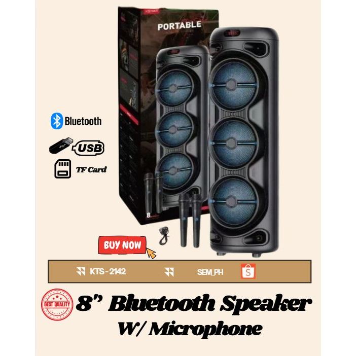 KTS-2142 Portable Bluetooth Speaker with 2 Wireless Microphones 38inch Big Size FM USB SD Card LED