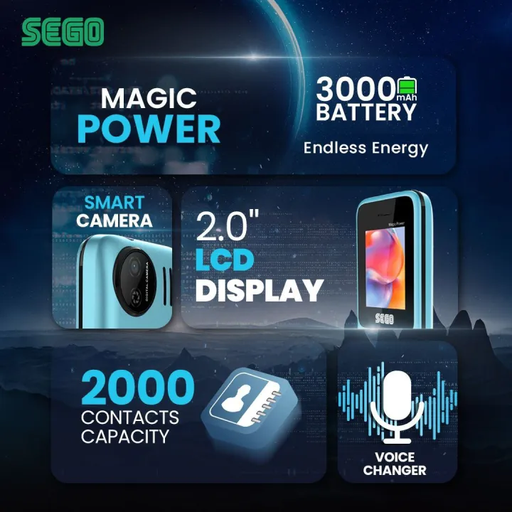 Product details of SEGO MAGIC POWER – 2.0 inch Display – 3000mAH battery – Dual Sim – Magic Voice Changer – Auto Call recording – 1 Year brand warranty